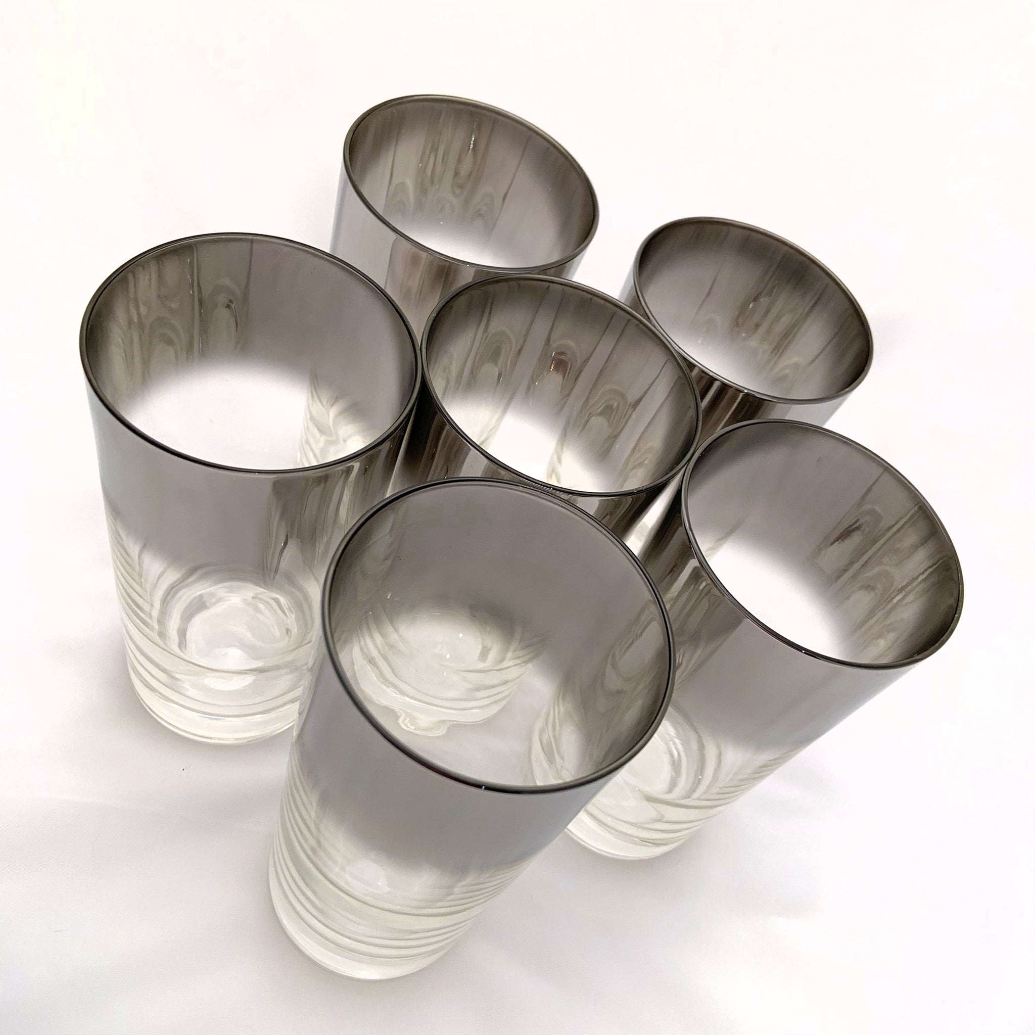 Vintage Mid Century Vintage Mid Century Silver Fade 10oz High Ball Cocktail Glasses, Six (6) 10 Ten oz Dorothy Thorpe High Ball Cocktail Glasses High Hi Ball Highball Cocktail Glass Bar Barware Cart Entertain Dinner Water Alcohol Liquor Drinking Drinks Party 1960s MCM Retro Flea Market Style shabby Chic Freelton Hamilton Antique Mall Toronto Canada Queens Lustre Shop Store Community