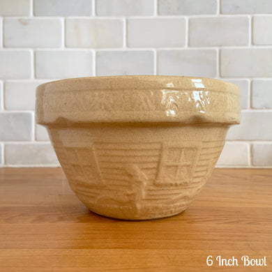 Vintage Girl Watering Can Yellow Ware Mixing Bowls, Robinson Ransbottom Pottery Co.
