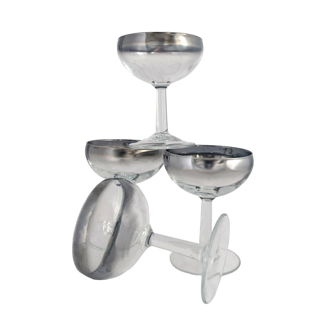 Four Vintage Silver Fade Champagne Cocktail Glasses, Luminarc, France