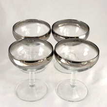 • Load image into Gallery viewer, Set of four vintage silver fade champagne cocktail glasses. Crafted by Luminarc, France, 1970s. This hard-to-find shape, just perfect to treat your guests to some cocktails or say cheers to a New Year's Eve toast, Mad Men style!