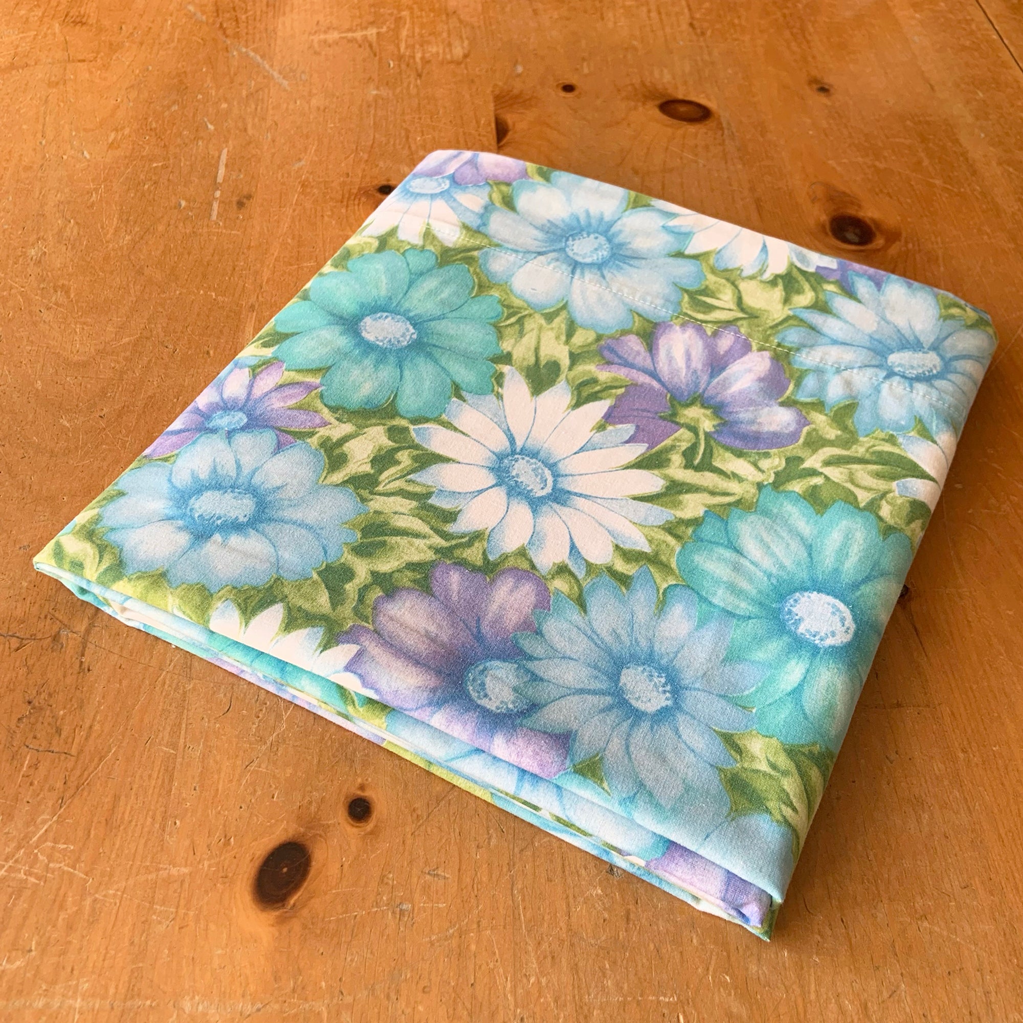 Jacks Daughter of All Trades Vintage Retro Store Shop Reseller Etsy Shopify Toronto Canada Free Porch Pick Up Local Delivery Worldwide Shipping Judy Weinberg Unique Gift Home Decor Farmhouse Cottagecore Cottage Feminine Shabby Chic Bedroom Monticello Celestial Blue Aloha twin flat bed sheet tropical turquoise green purple Cannon USA 1972 – 1975 flower power linens crafting dressmaking