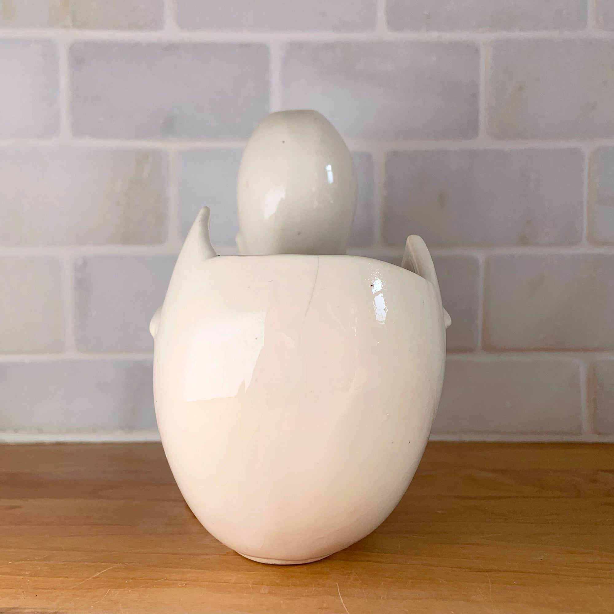 Vintage gloss white Duck and Egg planter. Crafted by McCoy Pottery, 1950s. This rare planter must for any art pottery collector!